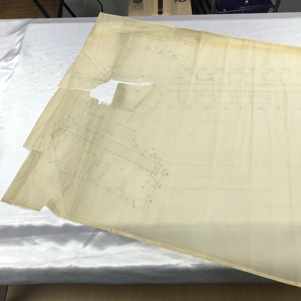 Bauzeichnung in schlechtem Zustand